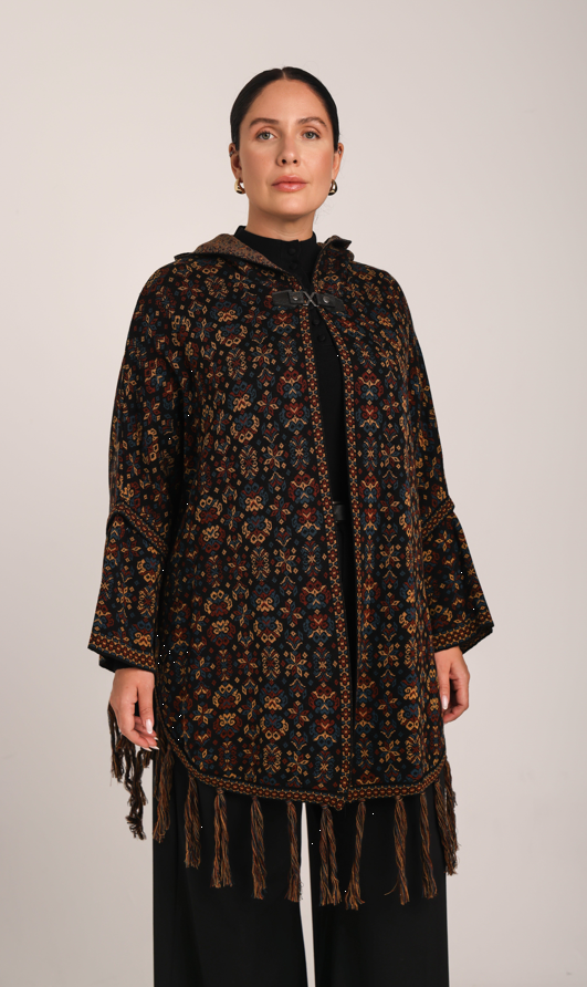 This winter cape is a versatile addition to your wardrobe. Made of high-quality material, it provides warmth and comfort while also adding a touch of elegance to any outfit. Its classic design and sturdy construction make it a durable and stylish choice for colder weather