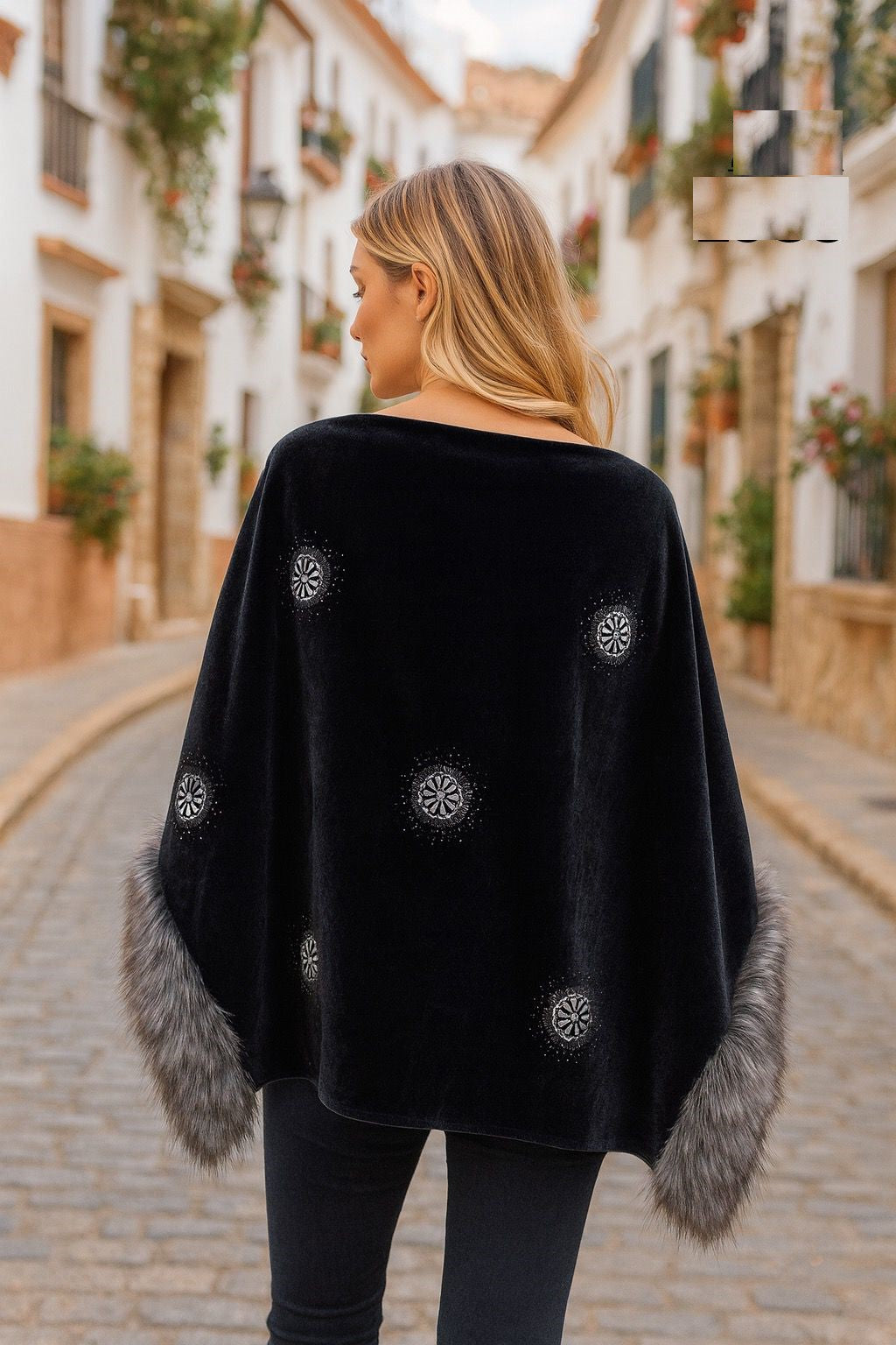 Enhance your winter wardrobe with our stunning black tassel shawl, crafted from luxurious French chiffon and finished with soft velvet touches. Combining elegance and warmth, this triangular shawl is the perfect accessory for any occasion. Its versatile design allows you to style it effortlessly, whether draped around your shoulders or wrapped around you. Enjoy the elegance of fine Turkish craftsmanship and stay warm with a bold look.