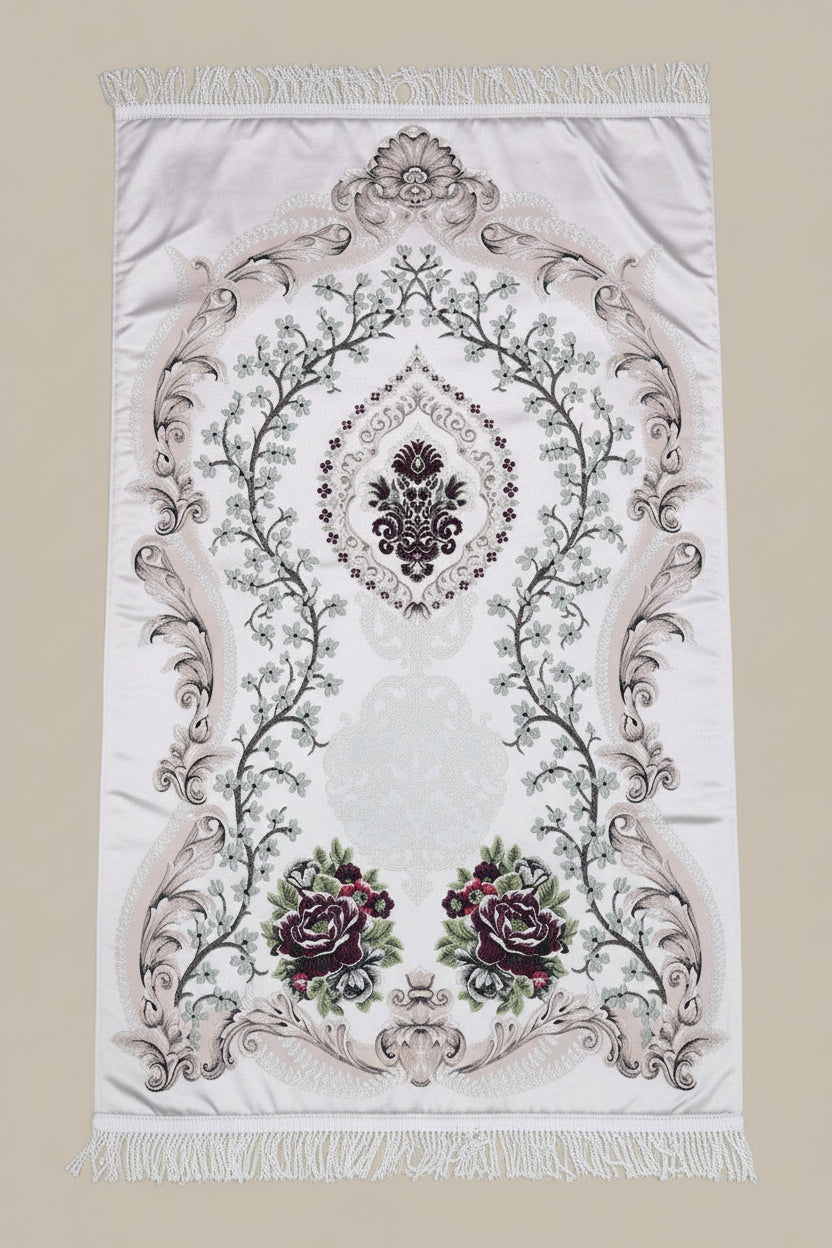 سجادة صلاة بنمط مميز وجميل، مع بطانة من الاسفنج سماكة 3 سنتيميتر صناعة سورية، مع سحاب من الخارج لسهولة الغسيل ، مع تطريز بخيوط الحرير والساتان