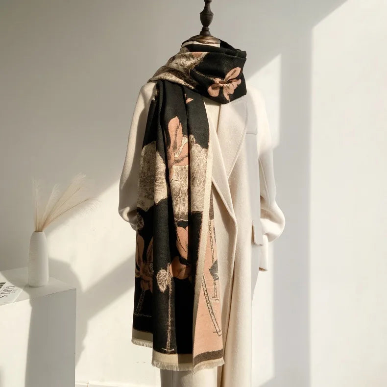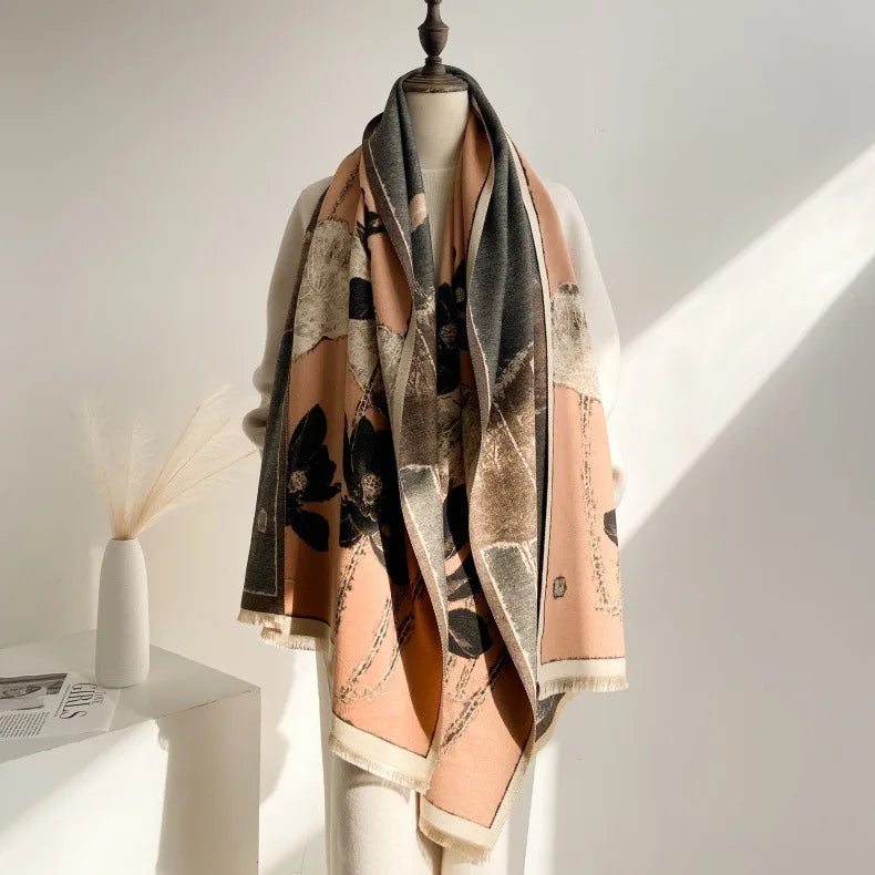 Luxurious Kashmiri pashmina shawl crafted from exceptionally soft and silky fibers that deliver superior warmth during cold winter months. Features stunning designs and a rich palette of colors to elevate any ensemble. With its generous oversized dimensions, it provides complete body coverage and seamlessly complements all clothing styles and occasions—from professional settings to social gatherings. An essential investment for those seeking both comfort and refined elegance throughout the winter season.