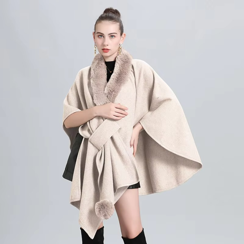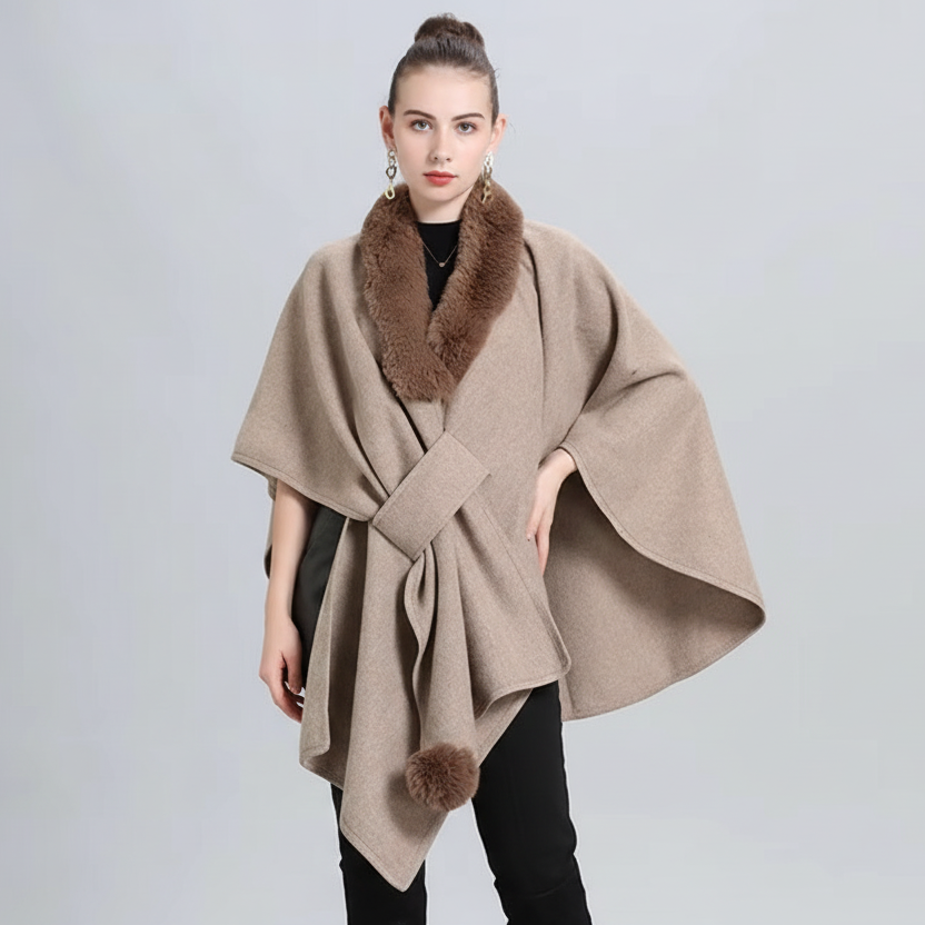 كاب شتوي فاخر بتصميم راقٍ وأسلوب أوروبي، يتميز بياقة فرو ناعمة  بحواف من الفرو تضيف لمسة من الدفء والفخامة. يمنحك إطلالة أنثوية أنيقة
