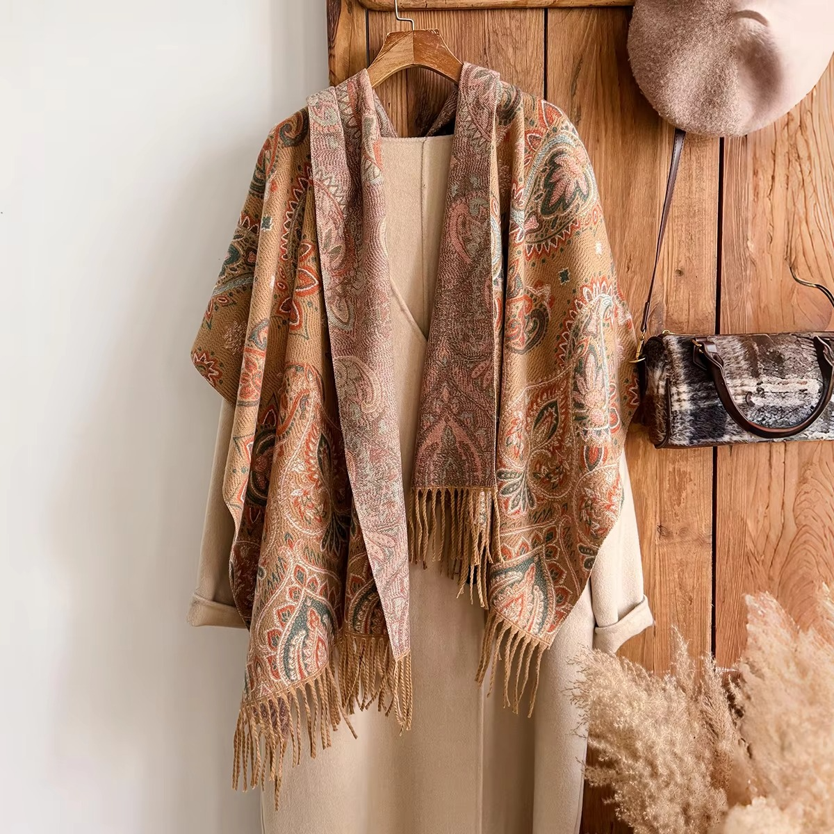 Luxurious Kashmiri pashmina shawl crafted from exceptionally soft and silky fibers that deliver superior warmth during cold winter months. Features stunning designs and a rich palette of colors to elevate any ensemble. With its generous oversized dimensions, it provides complete body coverage and seamlessly complements all clothing styles and occasions—from professional settings to social gatherings. An essential investment for those seeking both comfort and refined elegance throughout the winter season.