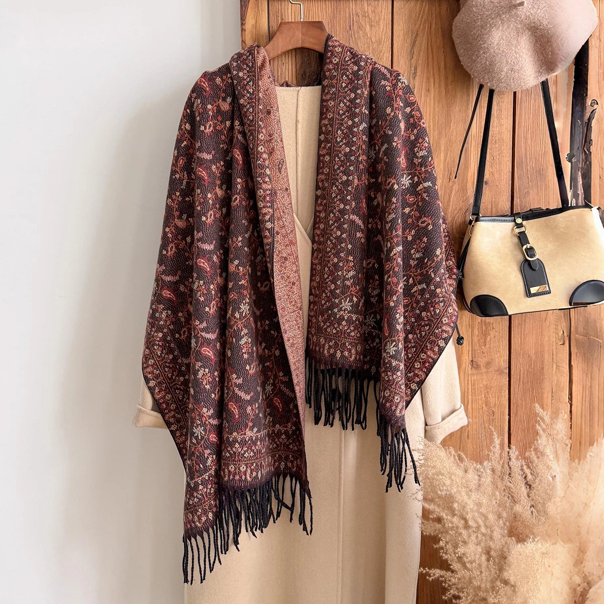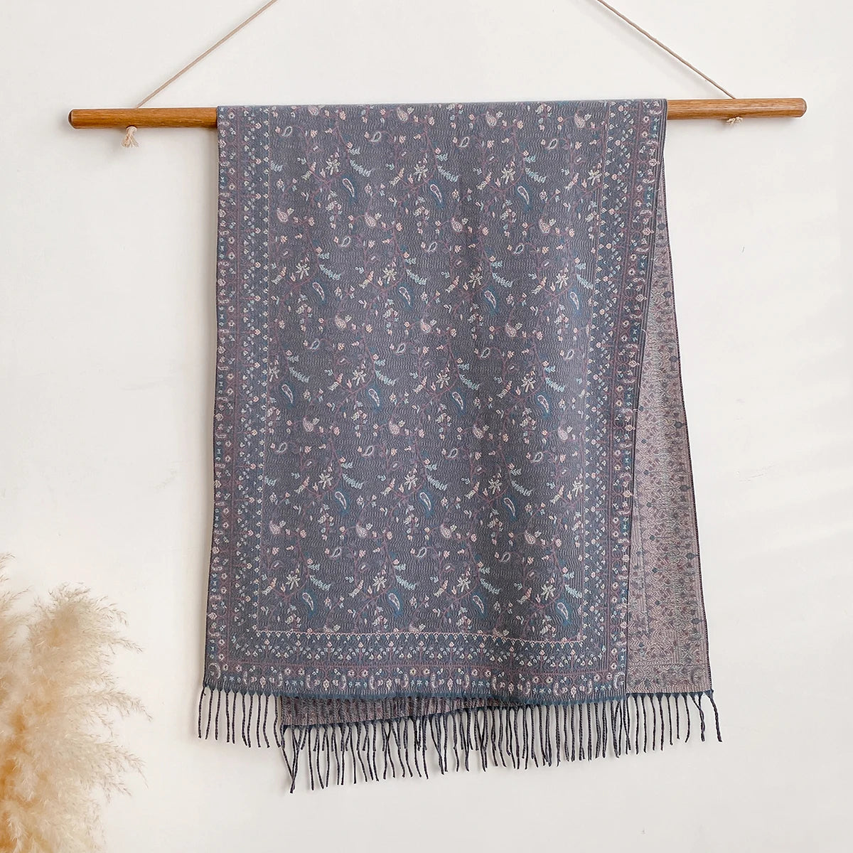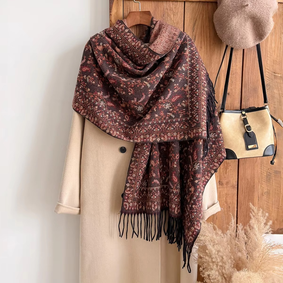 Luxurious Kashmiri pashmina shawl crafted from exceptionally soft and silky fibers that deliver superior warmth during cold winter months. Features stunning designs and a rich palette of colors to elevate any ensemble. With its generous oversized dimensions, it provides complete body coverage and seamlessly complements all clothing styles and occasions—from professional settings to social gatherings. An essential investment for those seeking both comfort and refined elegance throughout the winter season.