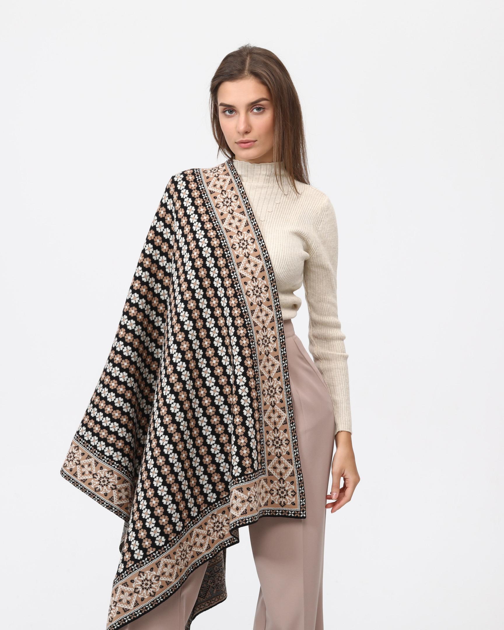 شال كتف أنيق محبوك من خام الأكريليك الناعم، مزين برسومات جميلة  يضيف لمسة من الرقي والدفء. التصميم المحبوك بعناية يوفر راحة استثنائية مع الحفاظ على مرونة الحركة. مثالي للارتداء اليومي أو المناسبات الخاصة، يجمع بين الأناقة والعملية. الخامة الأكريليكية عالية الجودة تضمن متانة طويلة الأمد وسهولة العناية. قطعة أساسية تكمل أي إطلالة بأسلوب عصري وكلاسيكي.