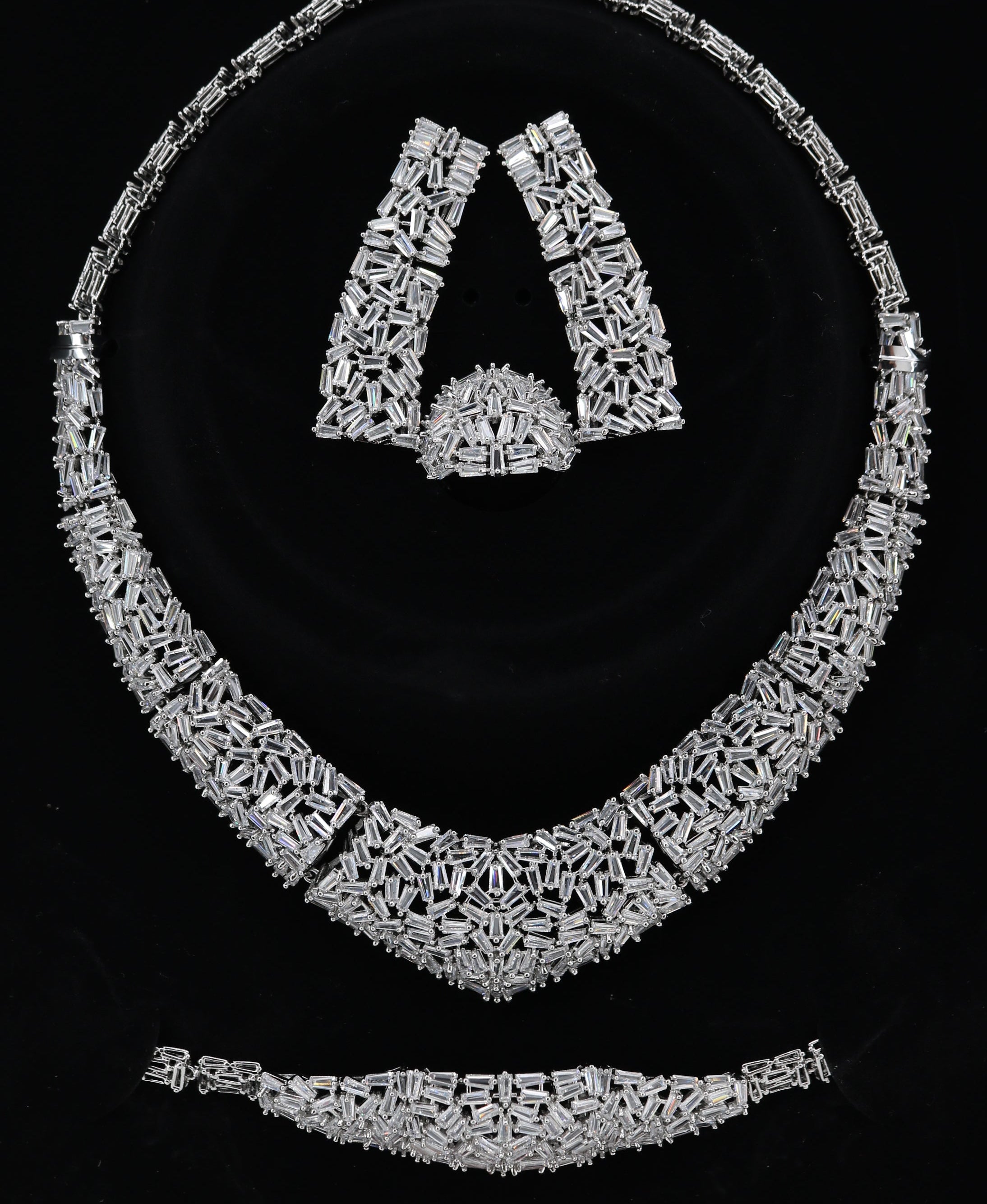 This accessory set includes earrings, a necklace, Ring and a bracelet, perfect for completing any outfit for special occasions and parties. Add a touch of elegance and sophistication with this versatile set. Made with quality materials, these pieces are sure to add the perfect finishing touch to your ensemble.