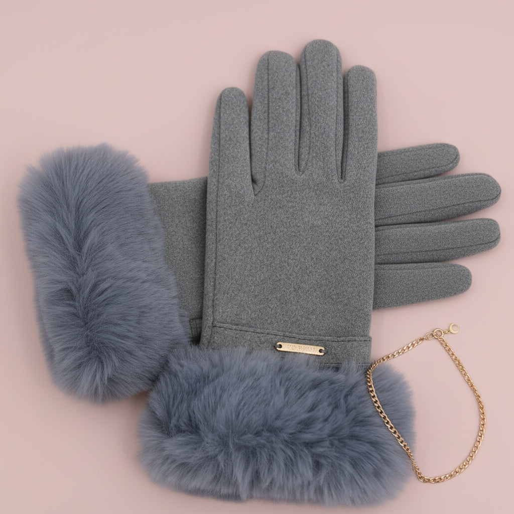 قفازات شتوية نسائية فاخرة مصنوعة من مواد عالية الجودة مع بطانة فرو ناعمة توفر دفئاً استثنائياً وراحة طوال فصل الشتاء. التصميم الأنيق يجمع بين الأناقة والعملية، مما يحافظ على يديك دافئة وحماية من البرد القارس. الفرو الداخلي يضمن ملمساً ناعماً وفاخراً، بينما المادة الخارجية متينة وسهلة التنظيف. مثالية للاستخدام اليومي أو المناسبات الخاصة، هذه القفازات تجمع بين الأداء والأناقة بشكل متوازن.